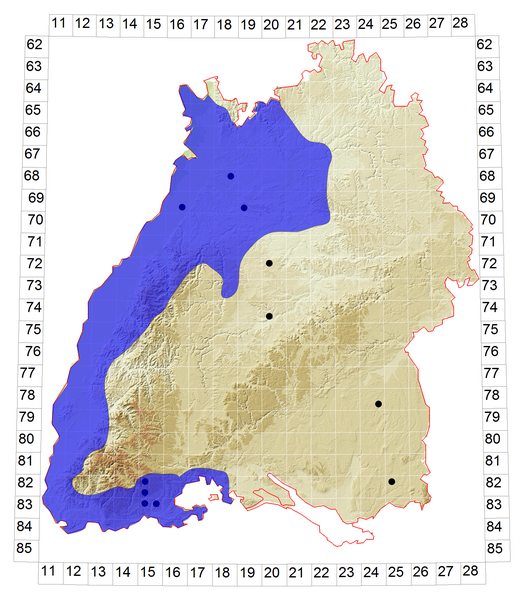 Schematische Verbreitung von P. muralis in Baden-Württemberg: