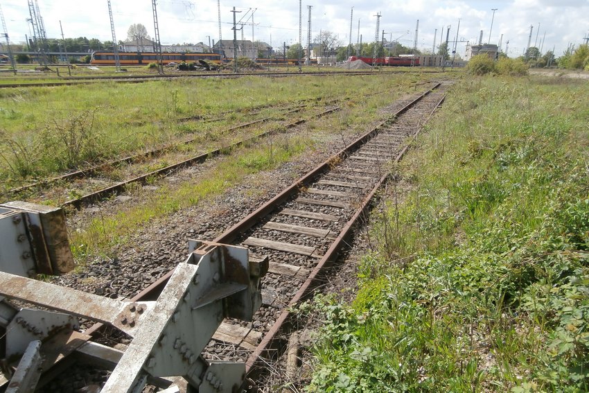 Gleisanlage eines alten Rangierbahnhofs im Strom- und Heuchelberg (Heilbronn) als Habitat der Mauereidechse.