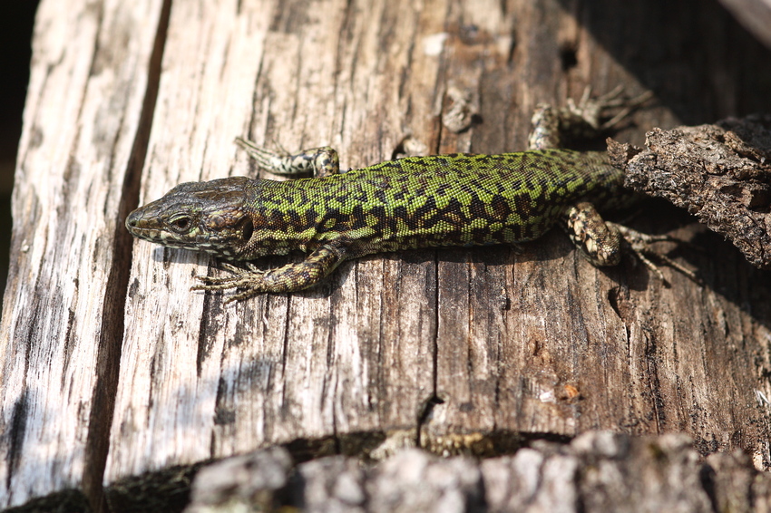 Sich sonnendes Jungtier der Mauereidechse im Südschwarzwald, November 2020.