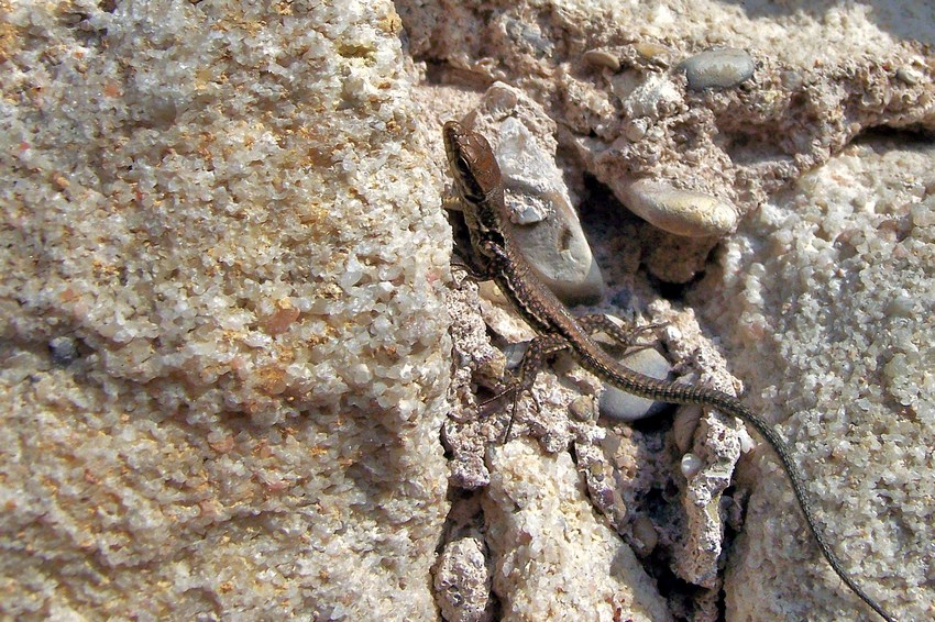 Sich sonnendes Weibchen der Mauereidechse im südlichen Odenwald (Hirschhorn), Mai 2013.