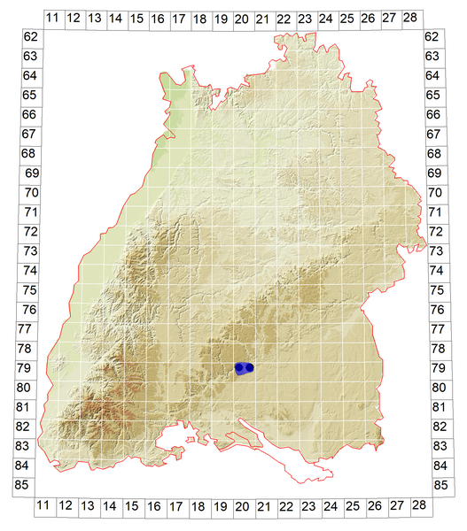 Schematische Verbreitung von P. pedestris in Baden-Württemberg: