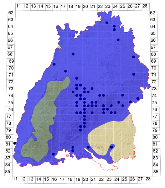 Schematische Verbreitung von A. agestis in Baden-Württemberg: