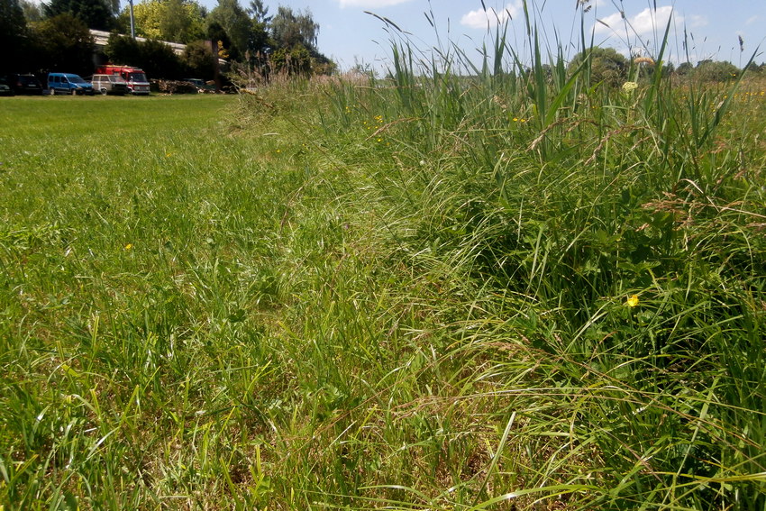 Larvalhabitat von A. agestis im Albvorland (Dettenhausen); extensiv genutztes, frischeres Grünland mit guten Beständen des Wiesen-Storchschnabels.
