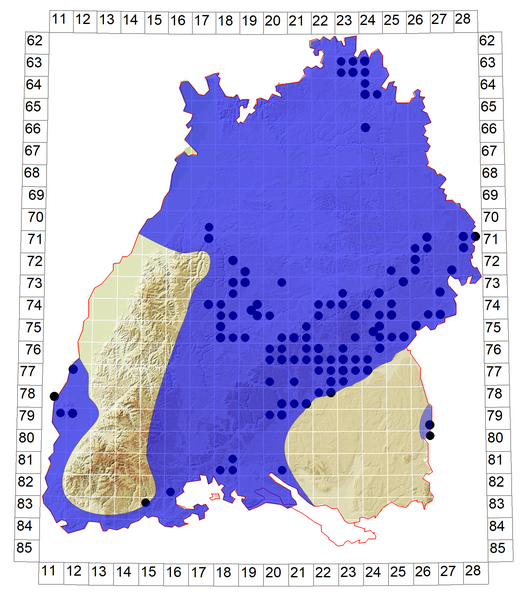 Schematische Verbreitung von L. coridon in Baden-Württemberg: