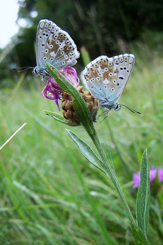 Zwei Männchen von L. coridon auf ihren Schlafplätzen in den Oberen Gäuen (Eutingen), August 2009.