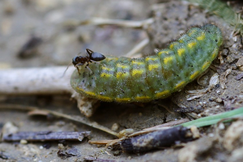 Raupe von L. coridon von Ameisen begleitet auf der Schwäbischen Alb (Eselsburg), Juni 2010.