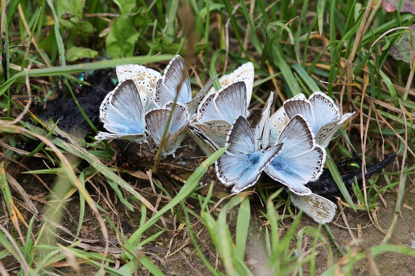 Zahlreiche männliche L. coridon laben sich an Kot in den Oberen Gäuen (Gültlingen), Juli 2011.