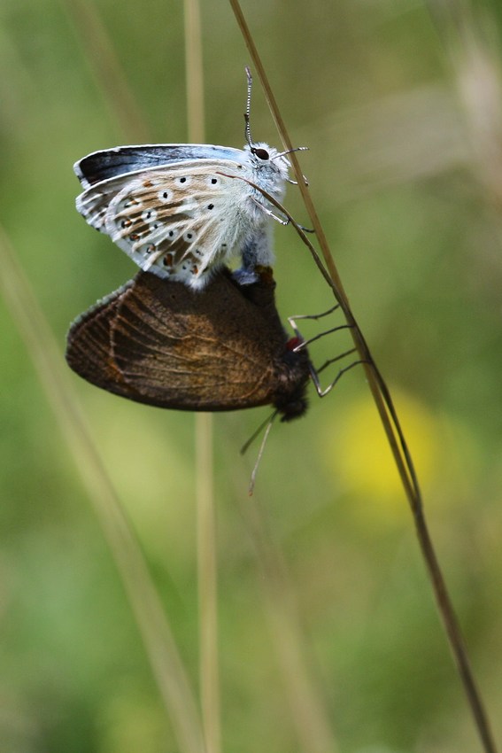 Fehlpaarung von L. coridon mit Maniola jurtina am nördlichen Albtrauf (Unterkochen), Juli 2012.
