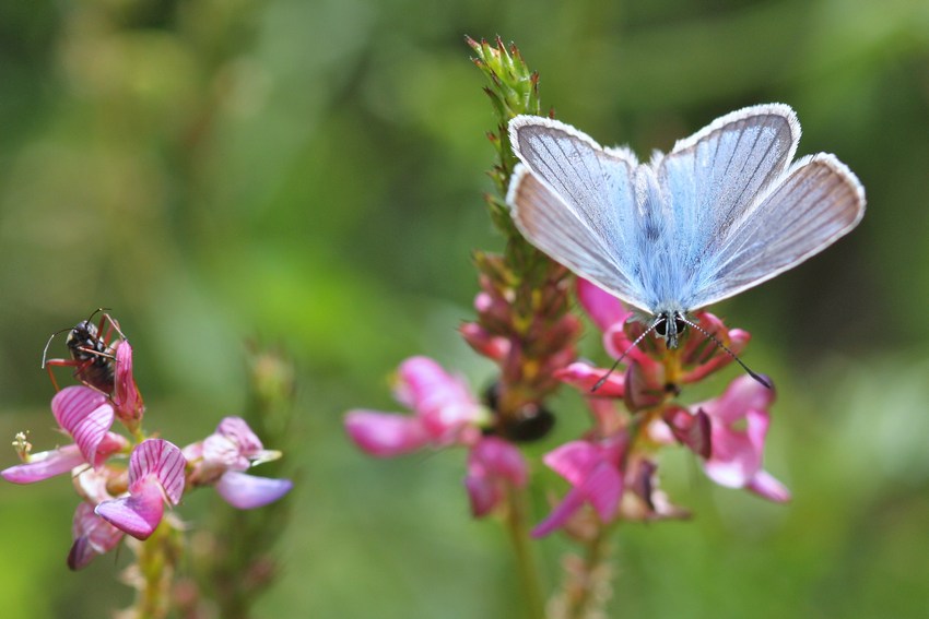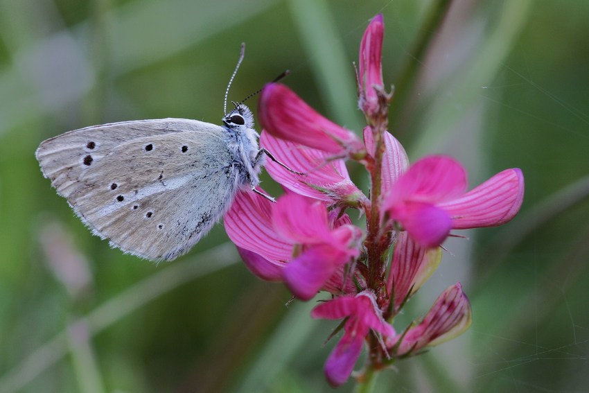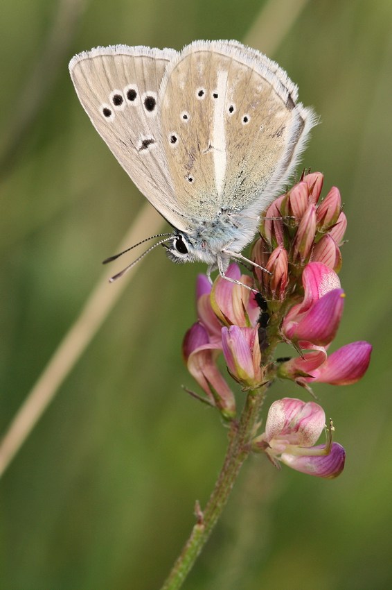 Flügelaußenseite des Männchens auf seiner Wirtspflanze Esparsette auf der Schwäbischen Alb (Ringingen), Juli 2011.