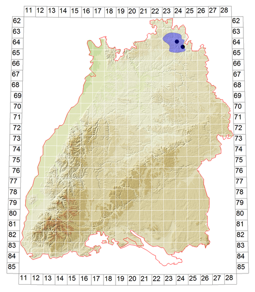 Schematische Verbreitung von P. daphnis in Baden-Württemberg: