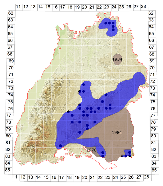 Schematische Verbreitung von E. eumedon in Baden-Württemberg: