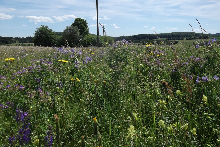 Saumreicher Halbtrockenrasen im Tauberland (Königheim), auch hier fliegt der Storchschnabel-Bläuling.