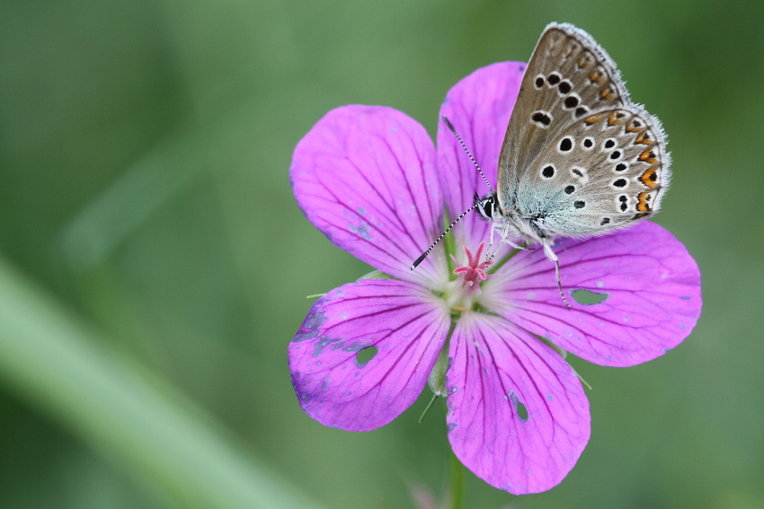 E. eumedon an G. sanguineum auf einem Magerrasen im Tauberland (Tauberbischofsheim), Juni 2010.