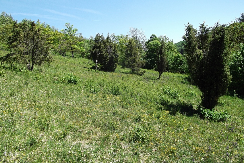 Randbereiche einer Bahnböschung im Übergang zu einer frischen Wiese als Reproduktionshabitat von E. eumedon auf der Schwäbischen Alb (Storzingen).