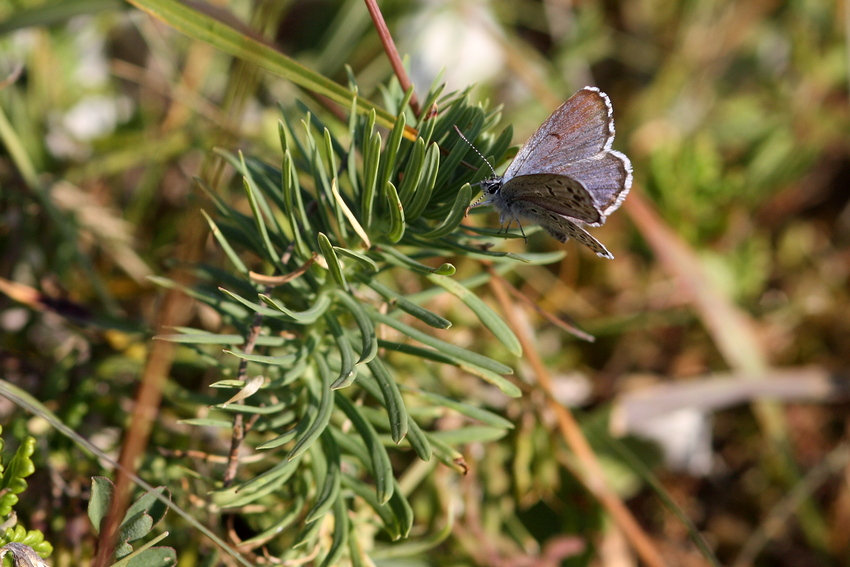 Männchen des Graublauen Bläulings auf einer Wacholderheide auf der Schwäbischen Alb (Bichishausen), Juli 2018.