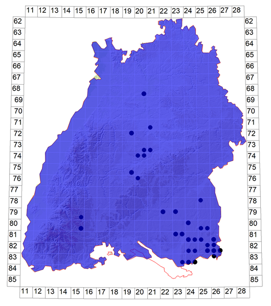 Schematische Verbreitung von P. nymphula in Baden-Württemberg: