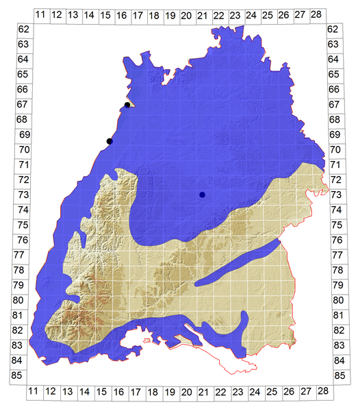 Schematische Verbreitung von P. ridibundus in Baden-Württemberg: