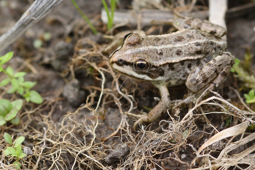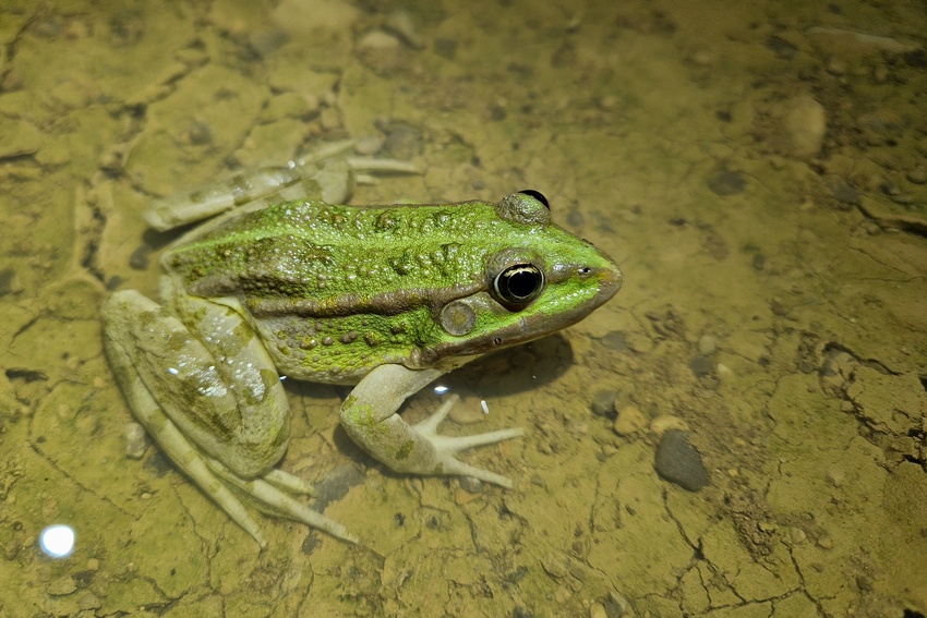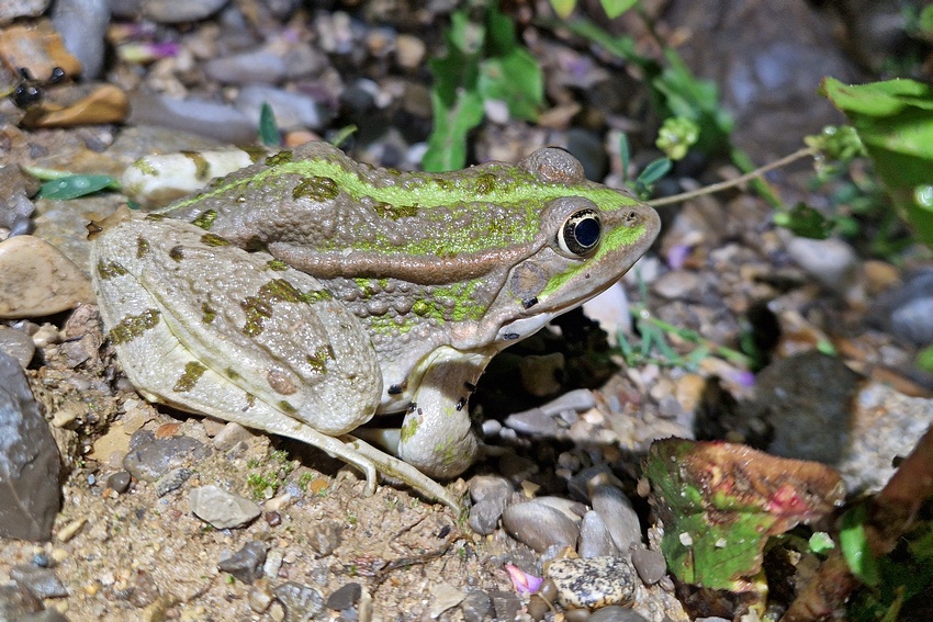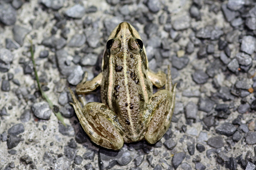 Subadulter Seefrosch in der Oberrheinebene (Philippsburg), April 2020.