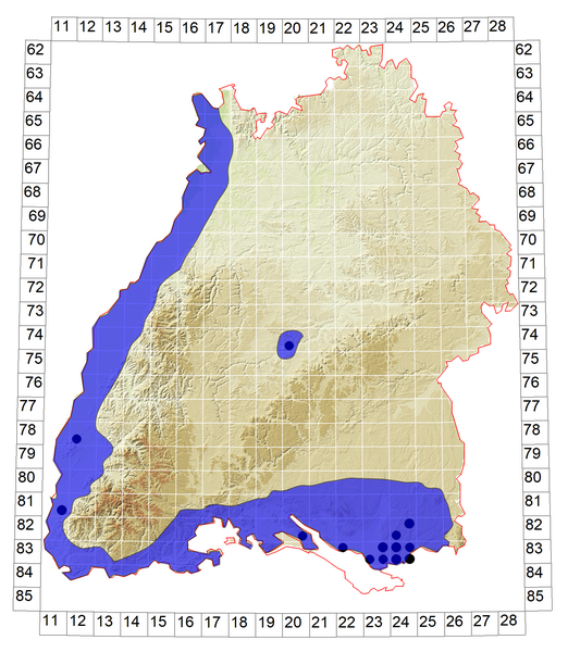 Schematische Verbreitung von R. nitidula in Baden-Württemberg: