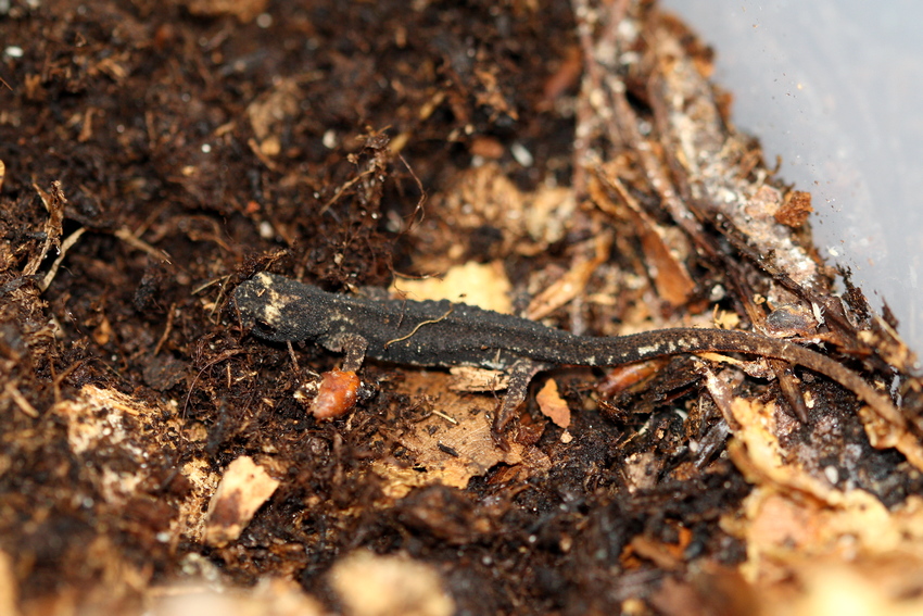 Im Winter 2025 sind nur noch zwei der fünf Nachzuchten vorhanden. Die Aufzucht dieser kleinen und sensiblen Art gestaltet sich äußerst schwierig. Die kleinen Salamander wachsen nur sehr langsam und ich verzichte bisher auf eine Winterruhe, da ich während dieser weitere Ausfälle befürchte. Immerhin scheinen die beiden überlebenden Tiere nun aus der sensibelsten Phase hinaus zu sein, fressen und wachsen gut. Wahrscheinlich handelt es sich um ein Pärchen. Das größere und kräftigere Tier (Weibchen) misst mit Schwanz mittlerweile 6-7 cm Gesamtlänge, während das kleinere und zierlichere Tier (Männchen) etwa 4-5 cm groß ist. Eine erfolgreiche Nachzucht mit diesem Pärchen könnte erstmals Anfang 2026 möglich sein.