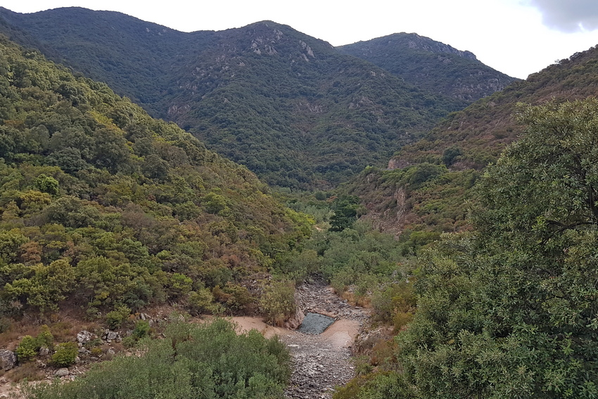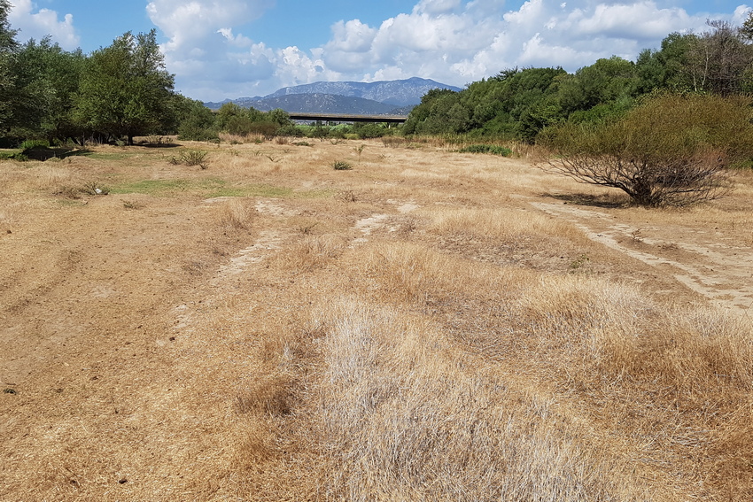 Die weitgehend ausgetrocknete Flussaue des Cedrino.