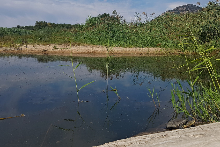 Weiteres, stärker eingewachsenes Stillgewässer am Cedrino, auch hier konnte eine Europäische Sumpfschildkröte beobachtet werden.