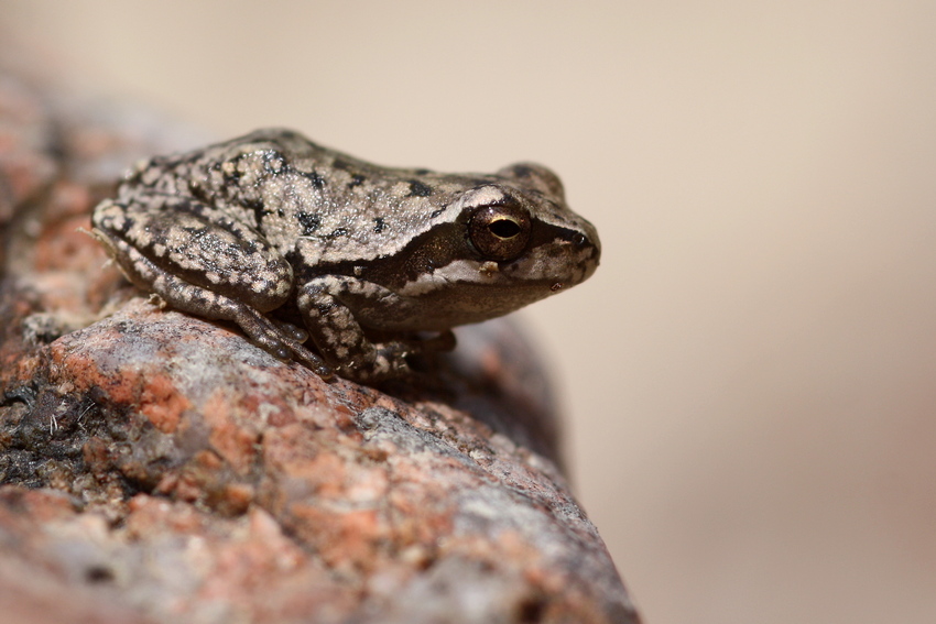 Graues Jungtier des Tyrrhenischen Laubfroschs (Hyla sarda).