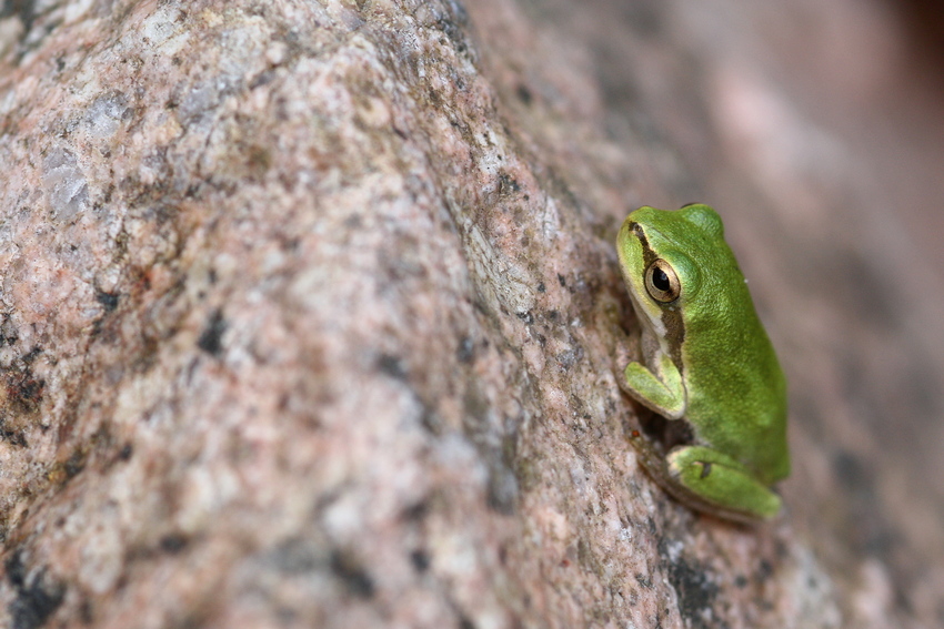 Tyrrhenischer Laubfrosch im Habitat in der Schlucht des Riu Ollastu.