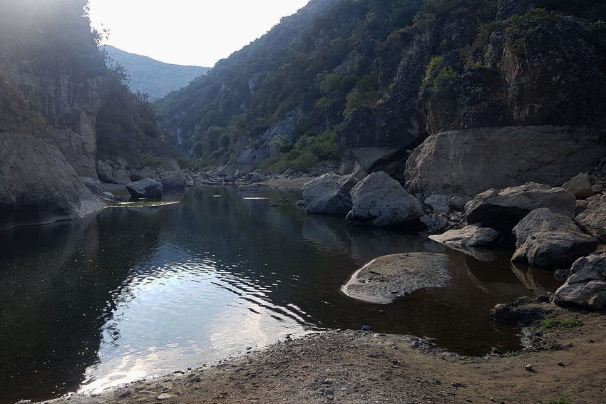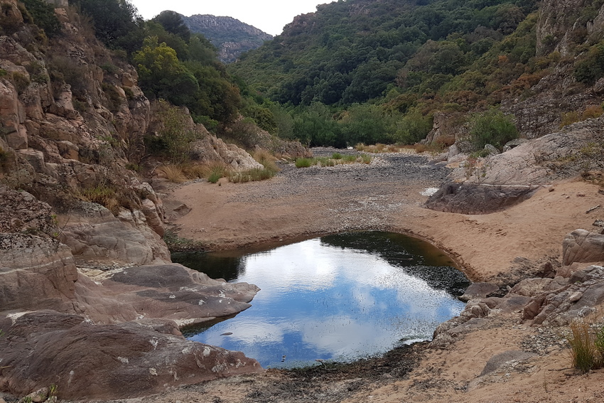Zu einem See aufgestauter Seitenarm des Cedrino mit Vorkommen der Tyrrhenischen Mauereidechse.