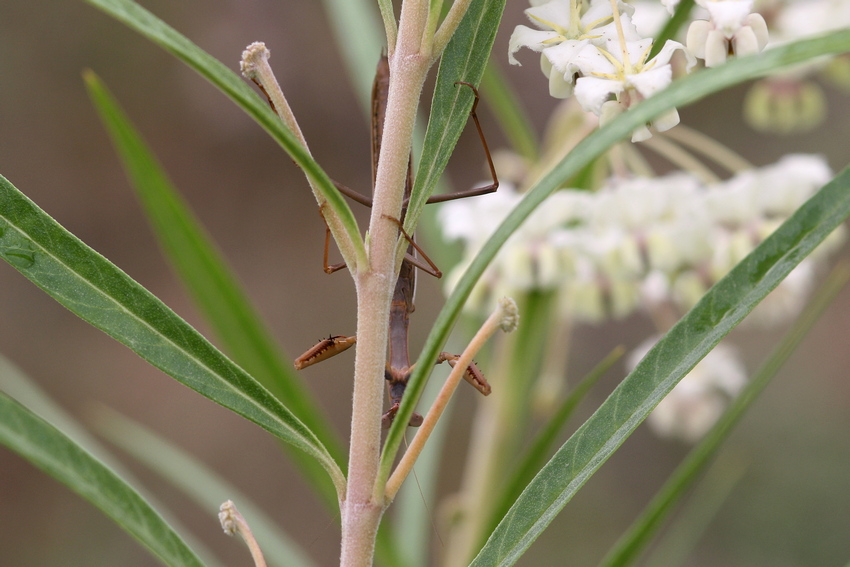 Hier versteckt sich die Gottesanbeterin Iris oratoria.