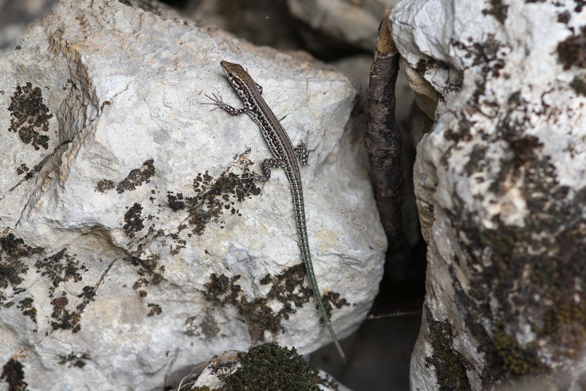 Jüngeres Weibchen der Tyrrhenischen Mauereidechse.
