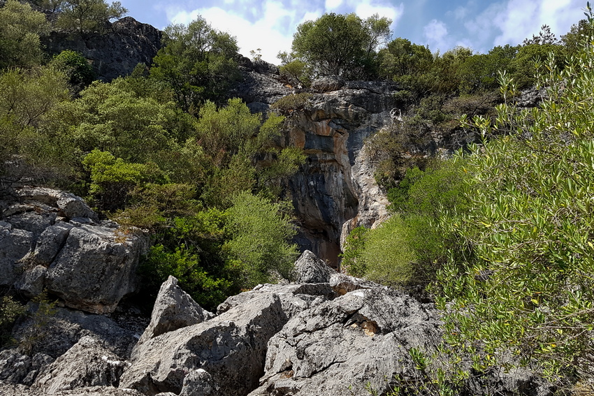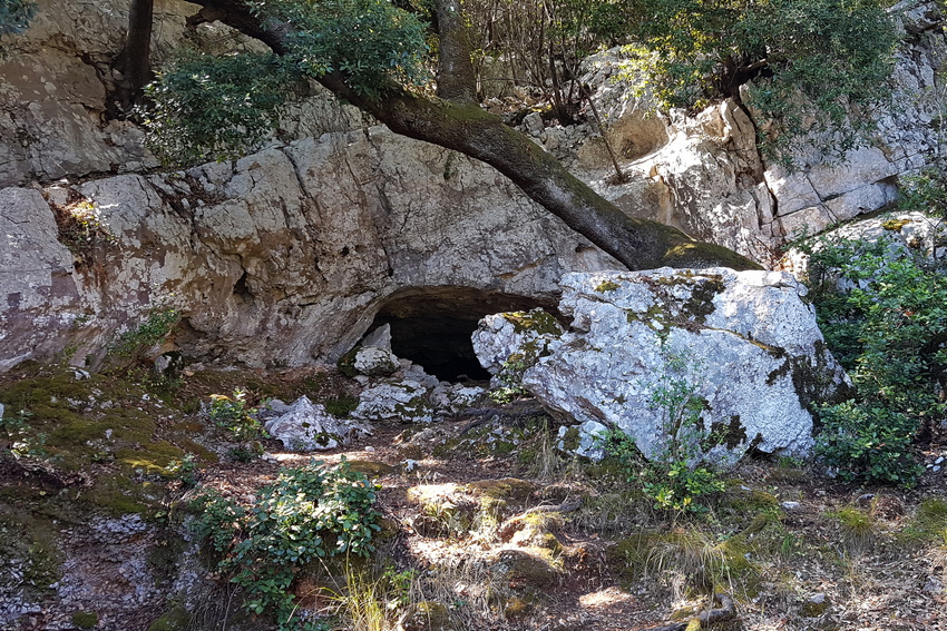 Felsiges Gelände am Eingang zu einer Höhle als gut von der Thyrrenischen Mauereidechse besiedeltes Habitat.