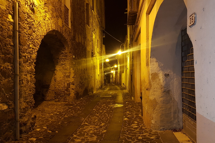 Malerische Gässchen, wie hier in Orosei, laden abends zum Flanieren ein. An den Lampen lauern regelmäßig Mauergeckos (Tarentola mauritanica) auf Beute.