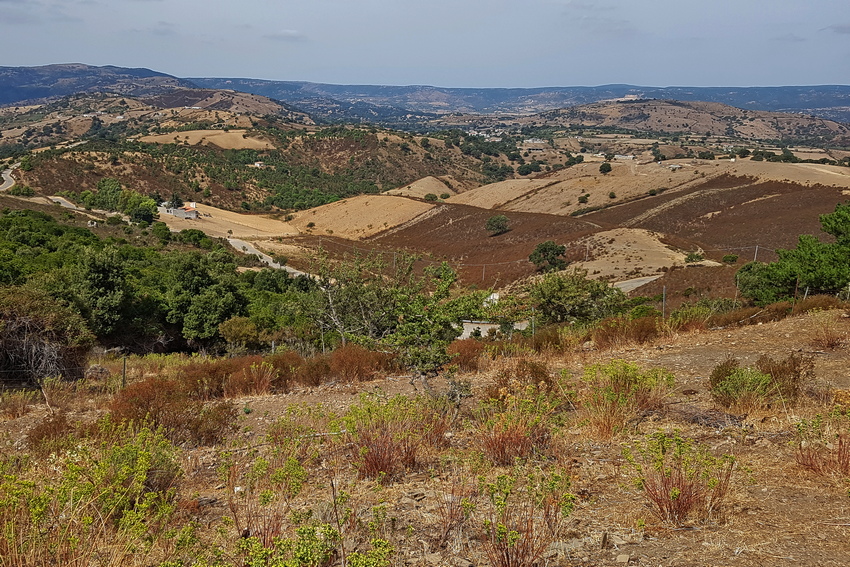 Blick ins Hinterland von Sardinien von den Höhen des Monte Albo-Gebirges aus.