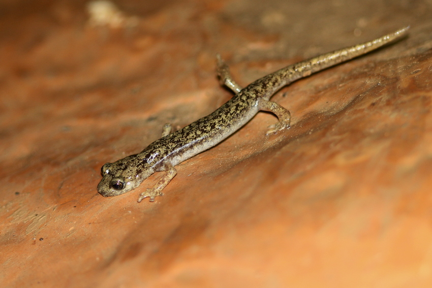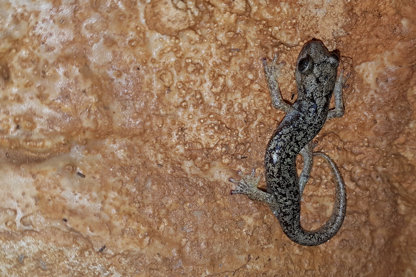 Gräulich gefärbtes Exemplar des Sopramonte-Höhlensalamanders.