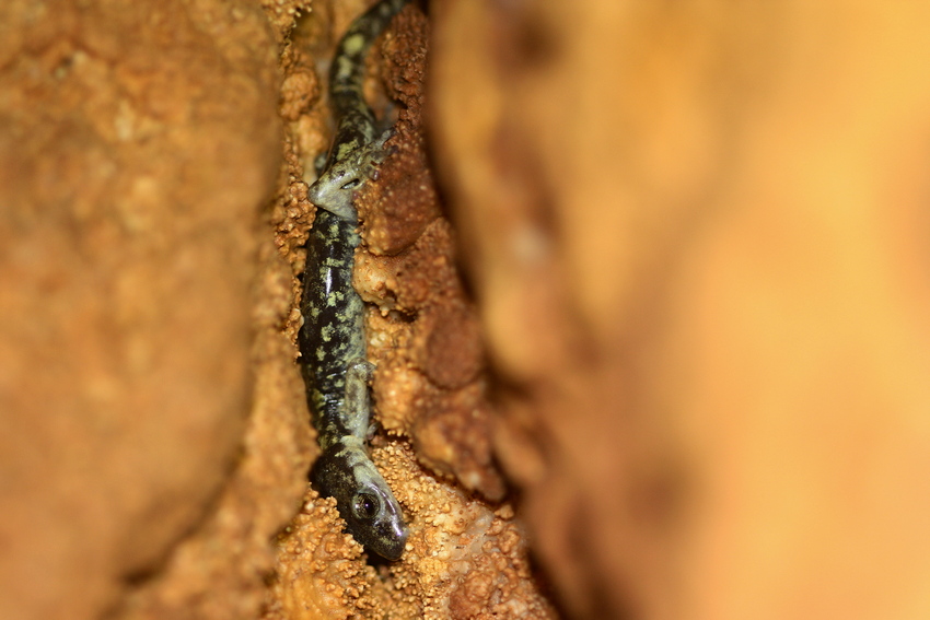 Jungtier des Sopramonte-Höhlensalamanders.