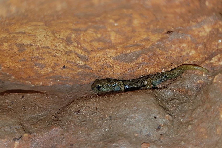 Nach diesem tollen Ausflug hatten wir auch wieder etwas mehr Motivation für eine weitere Höhlentour. Wir besuchten daher einen Höhlenkomplex im Sopramonte-Gebirge, der auch für Touristen geöffnet ist. Nachdem die erste Höhle keine Salamander zu bieten hatte, drangen wir in der zweiten Höhle weiter ins Innere vor und konnten tatsächlich nach kurzer Zeit unseren ersten juvenilen Sopramonte-Höhlensalamander in einer Nische erspähen. Nach und nach entdeckten wir weitere Salamander, darunter auch ausgewachsene Exemplare, die sich, geblendet von unseren Taschenlampen, meist in dunklere Bereiche der Höhlennischen zurückzogen. Letztendlich konnten wir ca. 20 Salamander in verschiedensten Formen und Größen finden, ein wahres Highlight unseres Urlaubs!