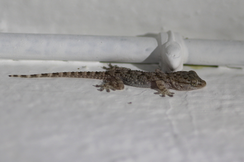 Jungtier des Europäischen Halbfingergeckos (Hemidactylus turcicus).