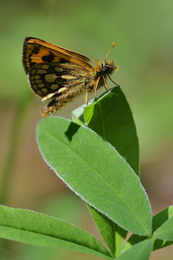 An einem wechselschattigen Waldeinschnitt bei Uppsala fand sich dieses Exemplar des Gold-Dickkopffalters (Carterocephalus silvicolus).