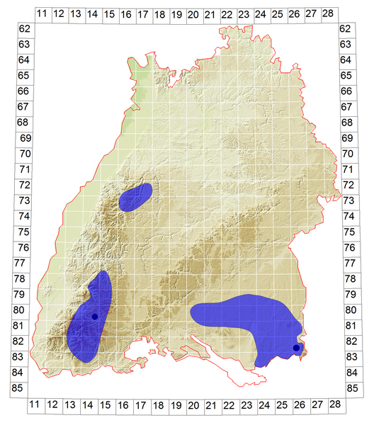 Schematische Verbreitung von S. arctica in Baden-Württemberg: