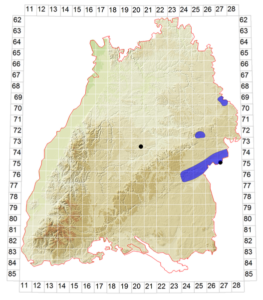 Schematische Verbreitung von S. flaveolum in Baden-Württemberg: