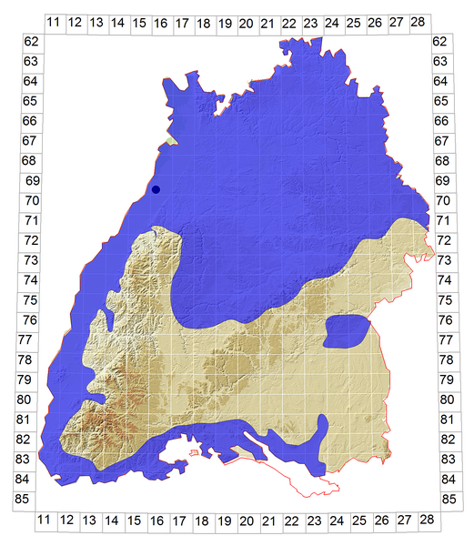 Schematische Verbreitung von S. meridionale in Baden-Württemberg: