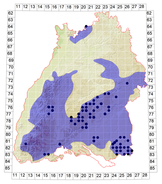 Dunkelblauer Bereich: Belegte Vorkommen