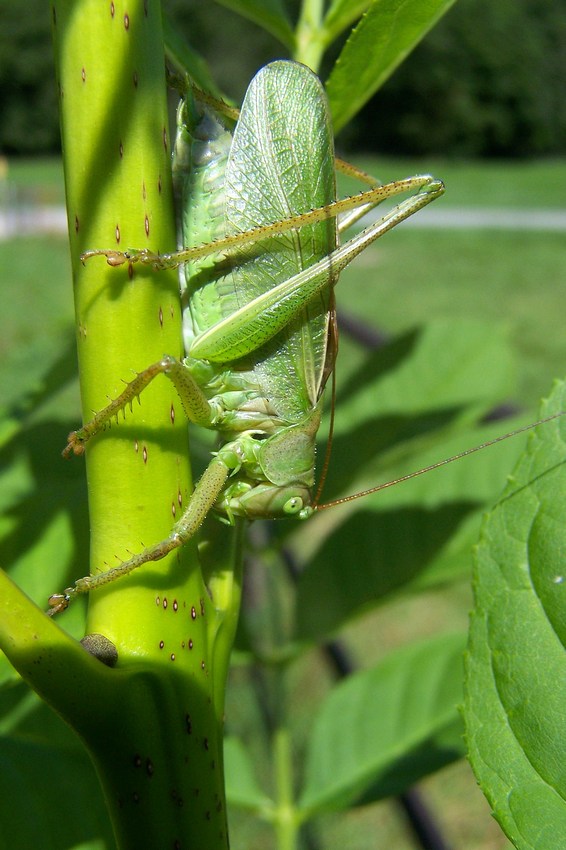 Weibliche Zwitscherschrecke auf der Schwäbischen Alb (Tiefenhülen), Juli 2014.