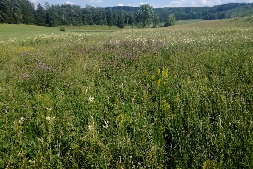 Solche schmalen Säume zwischen intensiv genutztem Grünland reichen für T. cantans auf der Schwäbischen Alb (Tiefenhülen) bereits für eine Besiedlung aus.