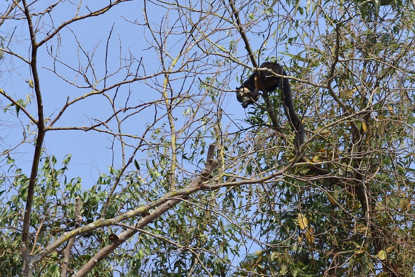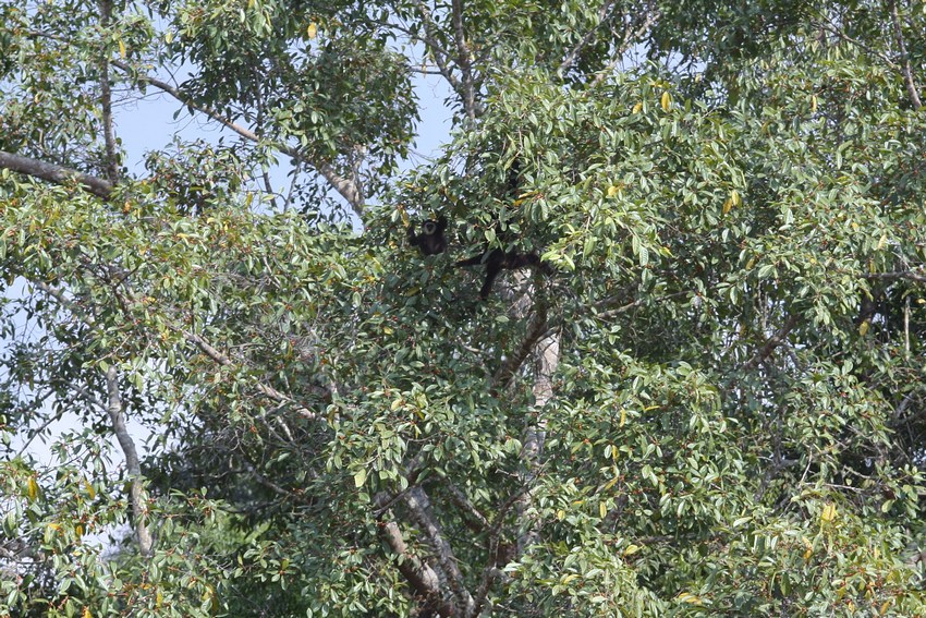 Weiterer Weißhand-Gibbon bei Hangeln durch die Baumkronen.