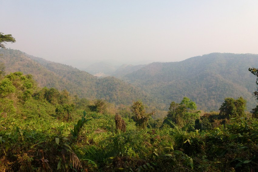 Überblick über einen kleinen Teil des Khao Yai Nationalparks, die Berghänge sind komplett von Primärregenwald überzogen.