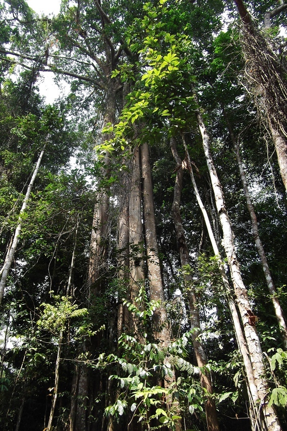 Blick in den Primärregenwald mit 60-80 m hohen Urwaldriesen.