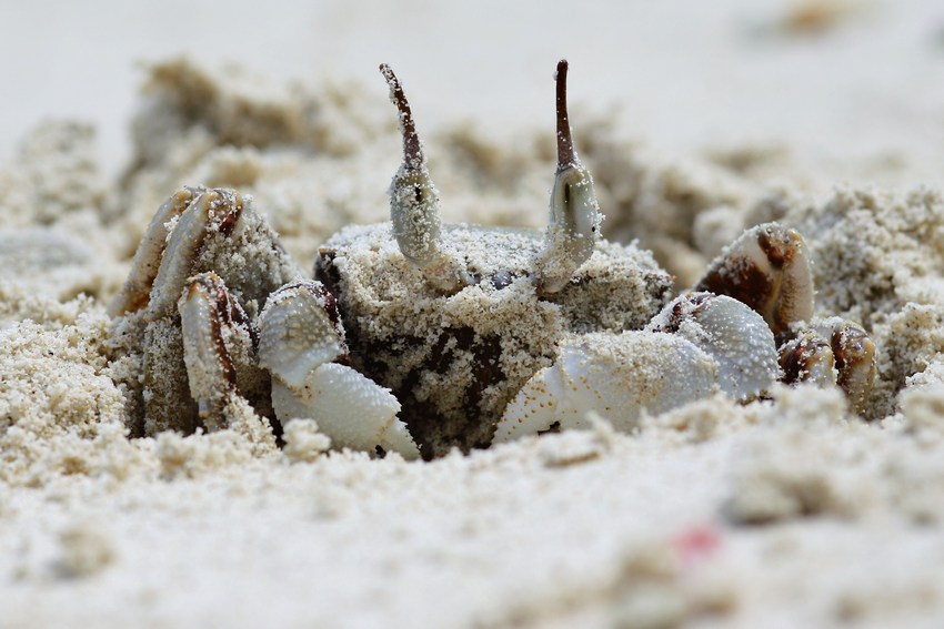 Diese Krabbenart fand sich in 30-40 cm Tiefe eingegraben entlang der Sandstrände.