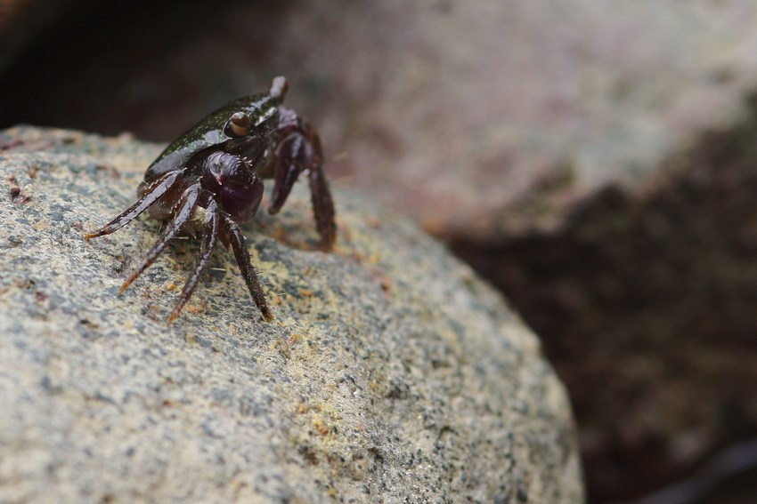 Diese kleinere Krabbenart mit lila-farbenen Scheren war entlang der Felsküste sehr häufig.